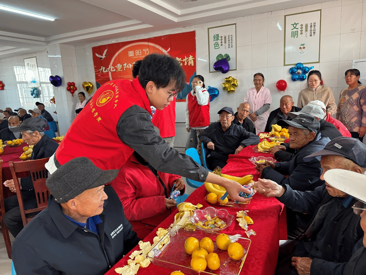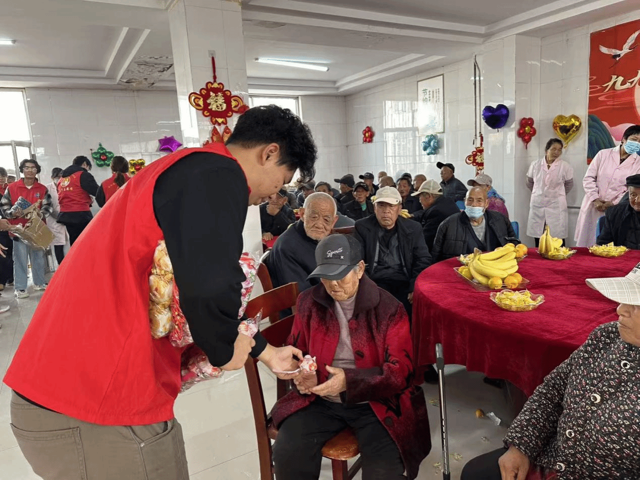 金秋重阳,情暖夕阳。2025年10月29日,正值寓意“久久安康”的重阳佳节,东营区牛庄镇孺子牛志愿联盟、东营手拉手爱心服务团队、山东石油化工学院石油工程学院学生第二党支部与石油工程学院小水滴爱心志愿者服务队,联合东营农商银行牛庄支行,共同走进东营区社会福利中心,开展“爱在重阳,最美夕阳”主题敬老活动,为院内老人送去节日的关怀与温暖。