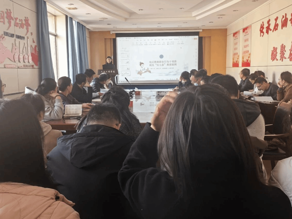为筑牢教师思想防线,强化师德师风建设,11月11日下午,石油工程学院在西配楼2028会议室召开师德警示教育大会。会议由学院副院长辛艳萍主持,全体教职工参加。