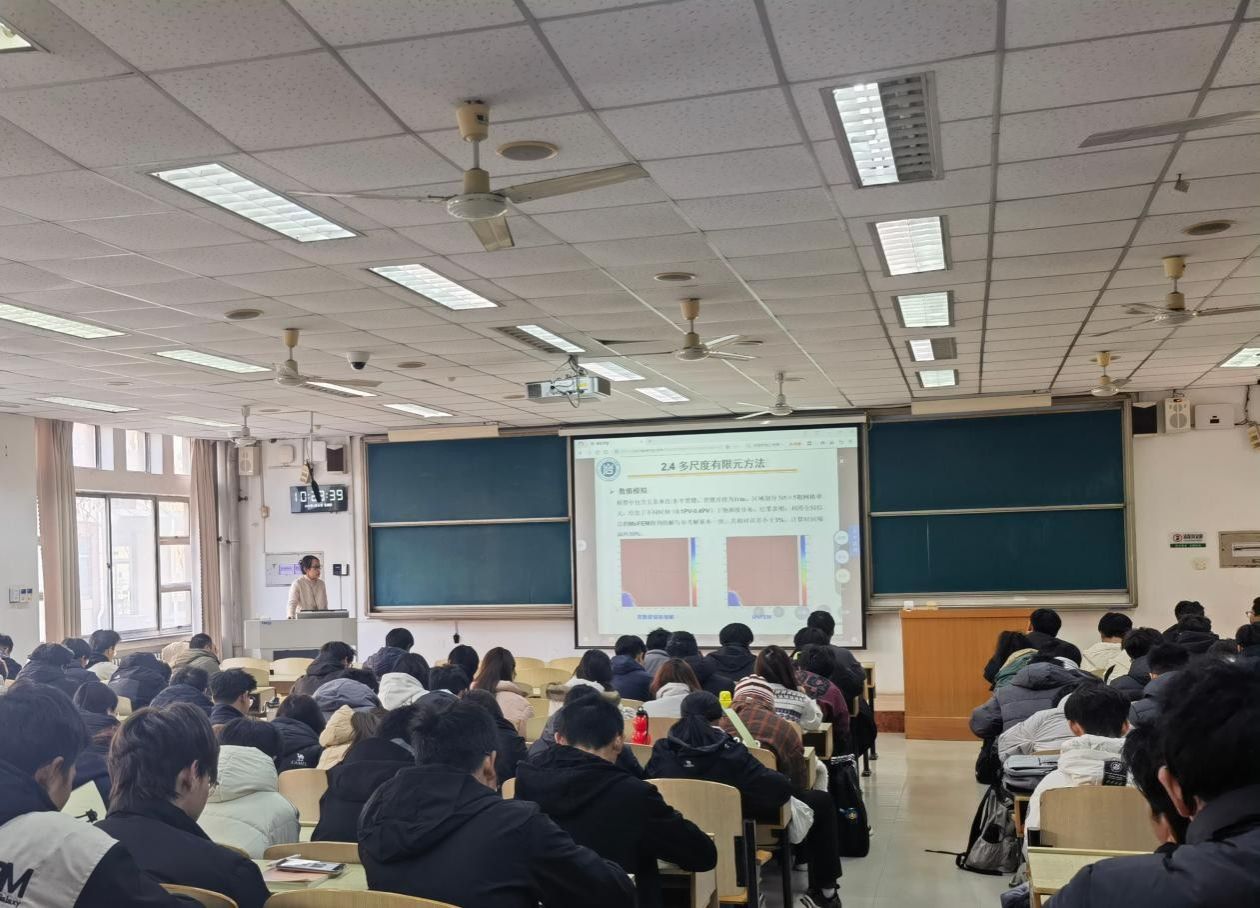 张娜以《复杂油藏多相流体跨尺度流动机理与数值模拟研究》为题,系统分享了其在复杂孔隙结构油藏内,多相流体从微观孔隙到宏观岩心尺度的流动机理、数学模型构建及高性能数值模拟方法等方面的创新研究成果。报告深入探讨了如何通过跨尺度耦合模拟技术,更精确地表征和预测油藏开发过程中的流体动态行为,为提高复杂油藏采收率提供了重要的理论依据与数值工具。在场师生围绕报告内容积极提问,与主讲人进行了深入交流和热烈讨论,现场学术氛围活跃。