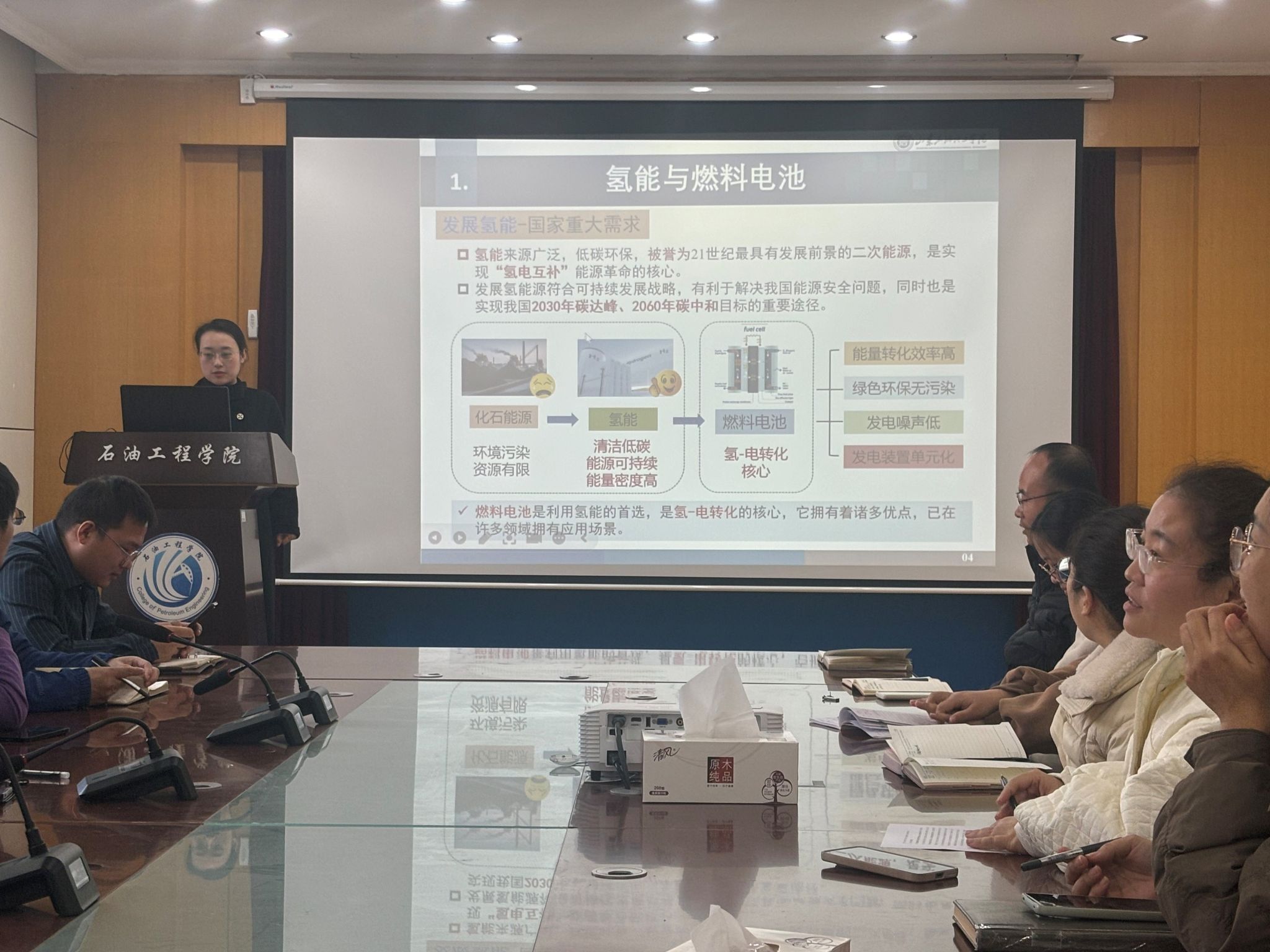 2025年11月27日,石油工程学院主办的第四十期青年学者学术沙龙在西配楼2028会议室顺利举行。本次沙龙以“新能源技术与发展”为主题,特邀田琳博士作专题报告,学院师生代表及相关领域研究者参与交流,现场学术氛围浓厚。