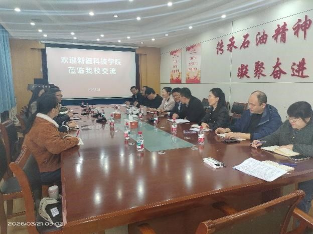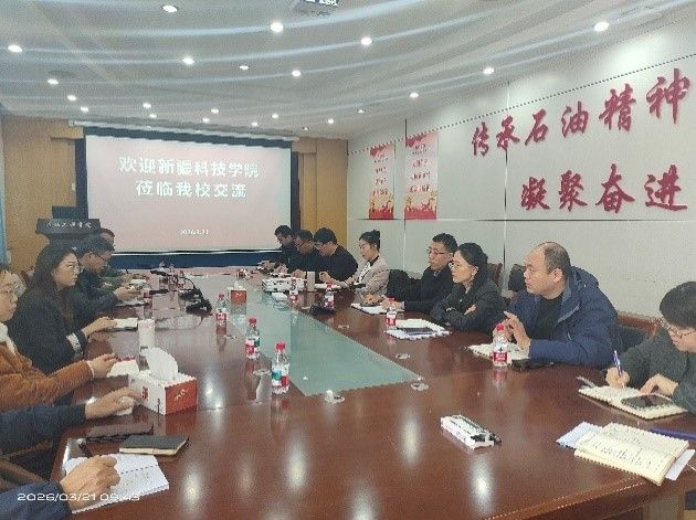 3月21日,新疆科技学院石油化工学院党总支副书记、副院长李军一行到访我校,就专业建设与发展进行专题调研。教务处副处长杜春安、石油工程学院院长代晓东、副院长辛艳萍、化学工程学院副院长刘文静,以及各专业负责人参加了此次交流会议。