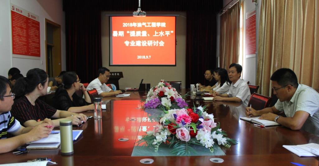 2018年9月7日上午8点,油气工程学院在会议室4004召开了暑期“提质量、上水平”专业建设研讨会。会议由执行院长梁敬升主持,代晓东副院长、辛艳萍副院长、各系室主任及全体教师参加了会议。