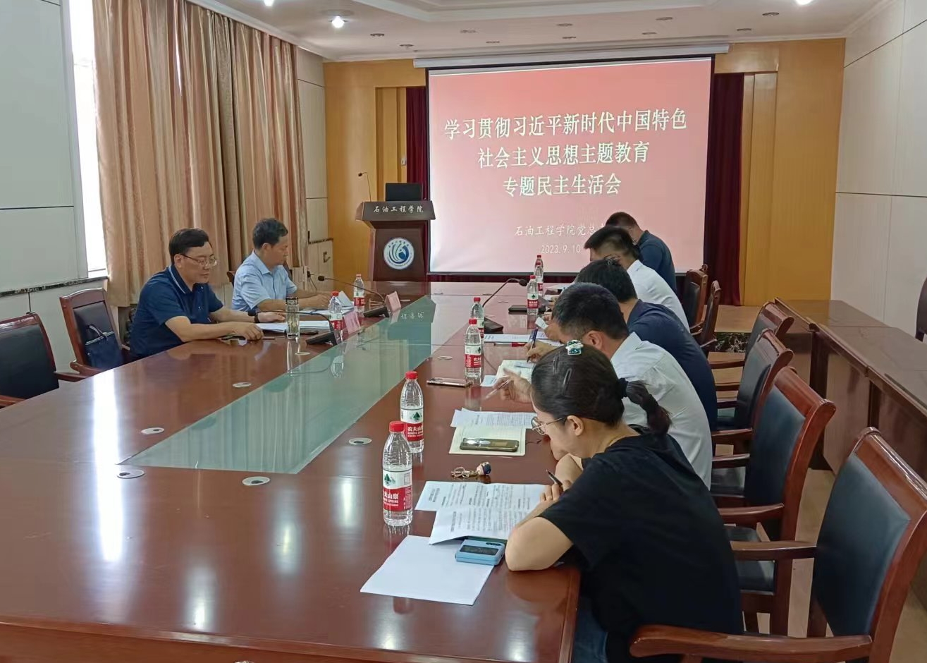按照《学习贯彻习近平新时代中国特色社会主义思想主题教育专题民主生活会方案》的通知要求,9月10日,石油工程学院党总支召开学习贯彻习近平新时代中国特色社会主义思想主题教育专题民主生活会。学校主题教育专题民主生活会第一指导组组长冯其红到会指导并作点评讲话,指导组孟昭亮列席会议,党总支全体成员参加会议,会议由石油工程学院党总支书记、院长代晓东主持。