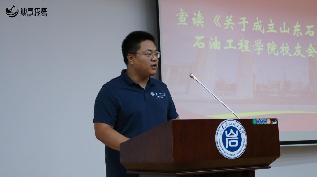 学生工作办公室主任王成宣读了《关于成立山东石油化工学院石油工程学院校友会的通知》,李聪聪宣读了《关于聘任山东石油化工学院石油工程学院校友会理事会成员的决定》。