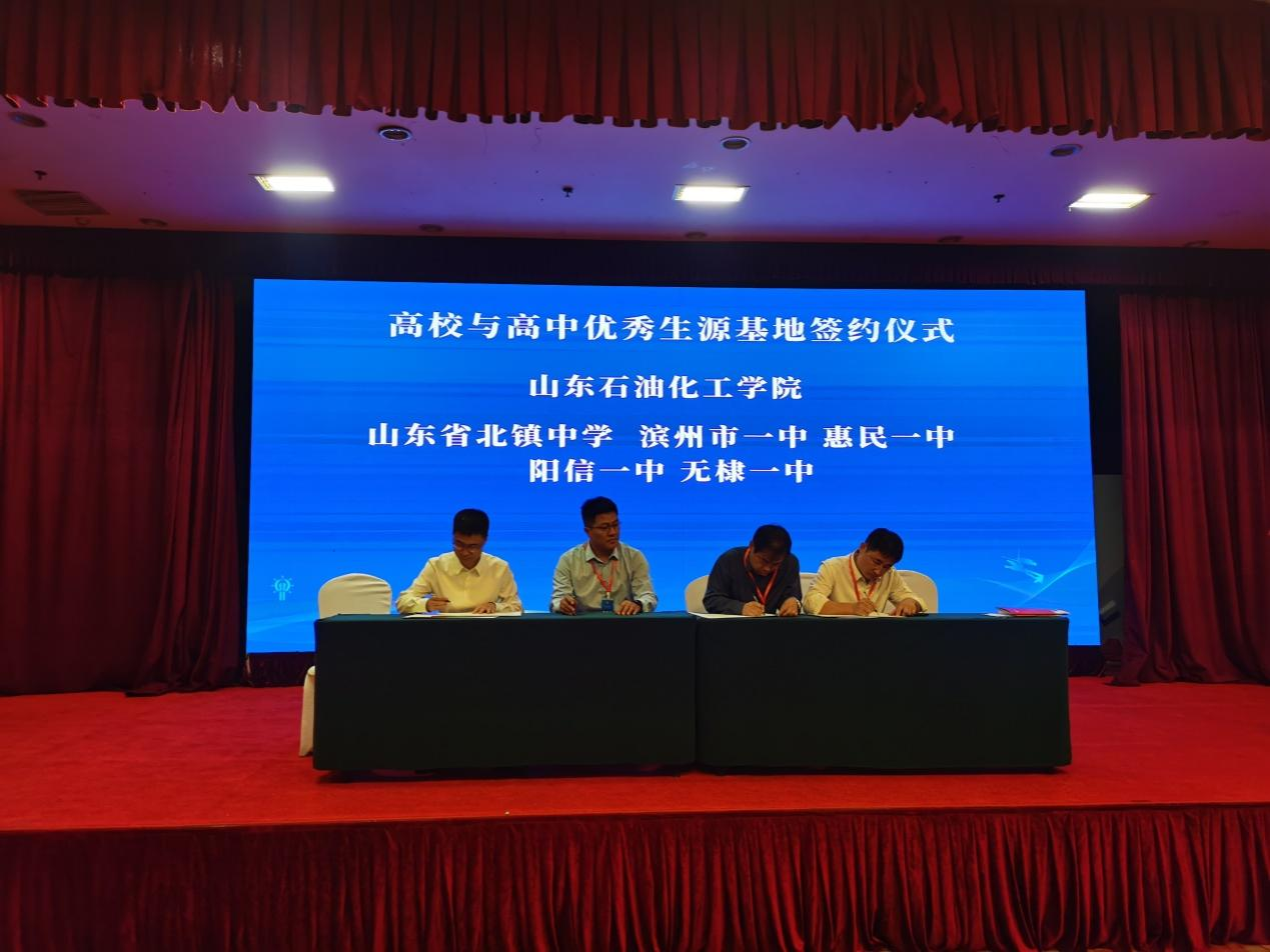 在优秀生源基地协议活动中,石油工程学院代表山东石油化工学院在现场与15所高中进行了优秀生源基地建设协议签约。