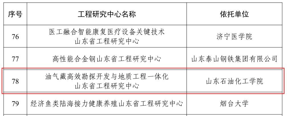 近日,山东省发展和改革委员会发布了《关于公布2023年认定山东省工程研究中心名单的通知》,山东石油化工学院牵头申报的“油气藏高效勘探开发与地质工程一体化山东省工程研究中心”获批。“油气藏高效勘探开发与地质工程一体化山东省工程研究中心”由山东石油化工学院联合胜利油田石油工程技术研究院、石油开发中心有限公司和山东瑞霖能源技术有限公司共同建设。