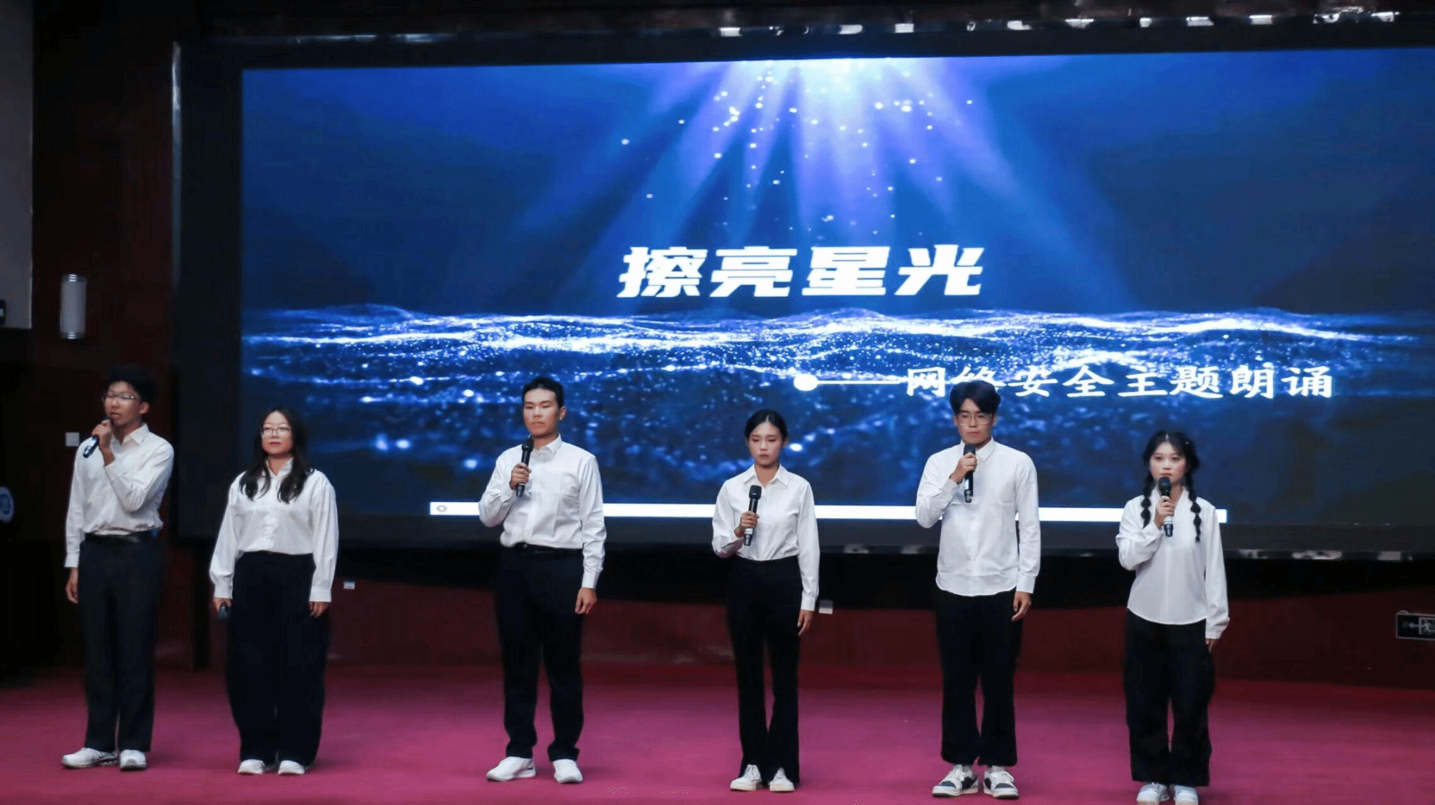 晚会节目形式丰富、亮点纷呈。科技创新协会的朗诵《红脉永续:从历史深处走向复兴未来》奠定庄重基调;油气传媒的《“擦亮星光”网络安全主题朗诵》警示网络风险;自律委员会的反诈话剧《“馅饼”的诱惑》以幽默演绎揭露校园骗局;学生会的创意歌曲《“我们的歌”反诈版本》用青春旋律传递防骗要点;正能量心理协会的反诈版《再别康桥》创意十足,团总支的《两毛一》则以真实案例敲响警钟,各类节目让观众在参与感中牢记“莫点链接、钱袋捂紧、转账莫行”的反诈准则。