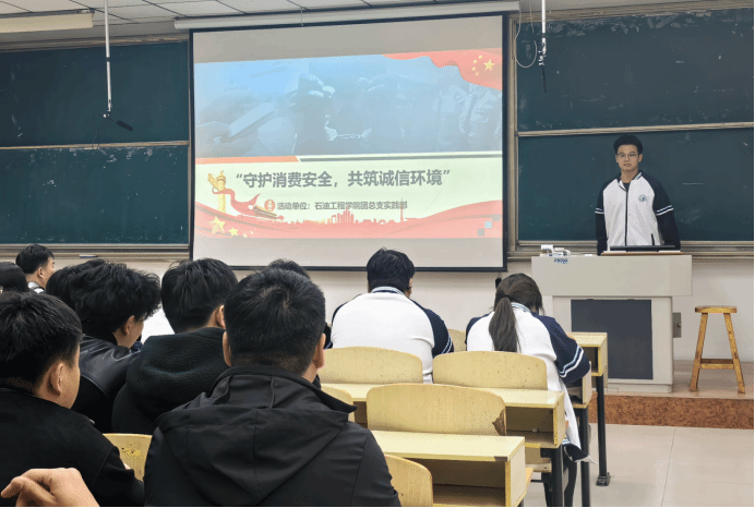 为深入贯彻落实消费者权益保护相关法律法规,切实提升青年团员消费安全意识与法治素养,引导树立科学理性消费观,在党建带团建、团建促党建的工作引领下,2026年3月24日,我院开展“守护消费安全,共筑诚信环境”主题团日活动,学生党支部和2024级油气储运工程4班团支部共同参与此活动。
