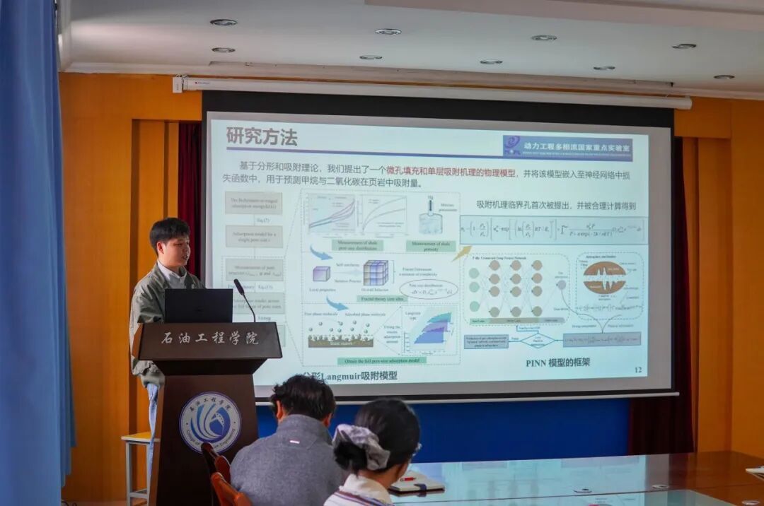 活动中,绿色氢电国家重点实验室博士生李霁薇介绍光伏驱动氢-氧-电联产技术,分享专利申请与高效文献阅读技巧;动力工程多相流国家重点实验室周玉团队展示物理信息神经网络模型,基于龙马溪页岩组数据实现二氧化碳吸附高效预测,助力碳封存与油气采收协同提升。