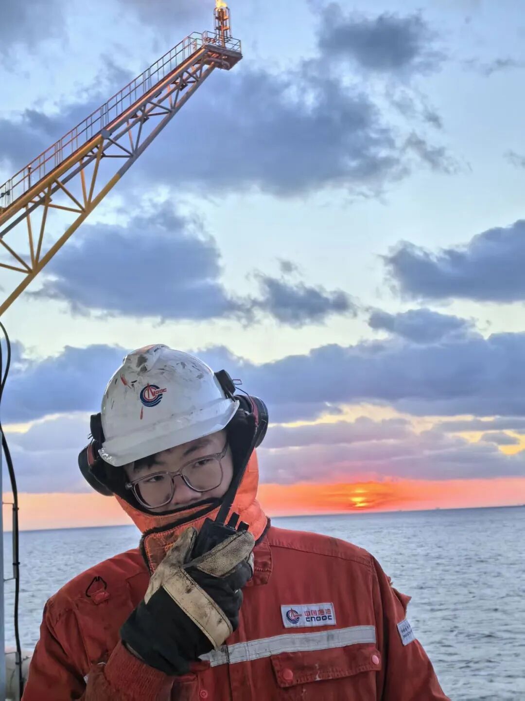 夕阳沉入渤海湾,海上平台灯火如繁星。我已从求学问知的学子,转变为保障国家能源安全的石油工人。站在这片蓝色疆土上,我深感肩负的责任与使命。从校园走向海洋,求实的初心激励着我,一路奔向碧海,扎根于蓝色能源的最前线。