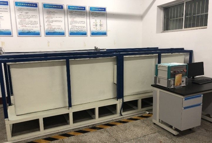 本实验室面向资源勘查工程和智能地球探测专业,用来支撑《地球物理测》课程实验教学,配备声波速度测井模拟装置、普通电阻率测井模拟装置和双侧向测井模拟装置。普通电阻率测井仪和双侧向测井仪通过水槽模拟地层,使用普通电极系和双侧向测井电极系测量模拟地层的电阻率,声波速度测井模拟装置,使用玻璃钢槽和铝槽模拟井孔外不同速度的地层,采用单发双收声系模拟测量不同地层介质的声波传播速度。系统实现声波速度测井、普通电阻率测井和双侧向测井的测量过程模拟及测井数据分析、测井曲线绘图。实验设备可直观展示测井过程,通过理论与实际操作结合,使学生掌握测井的基本原理、测井操作过程、测井数据类型及测井曲线特征,提升学生分析问题和工程应用能力。