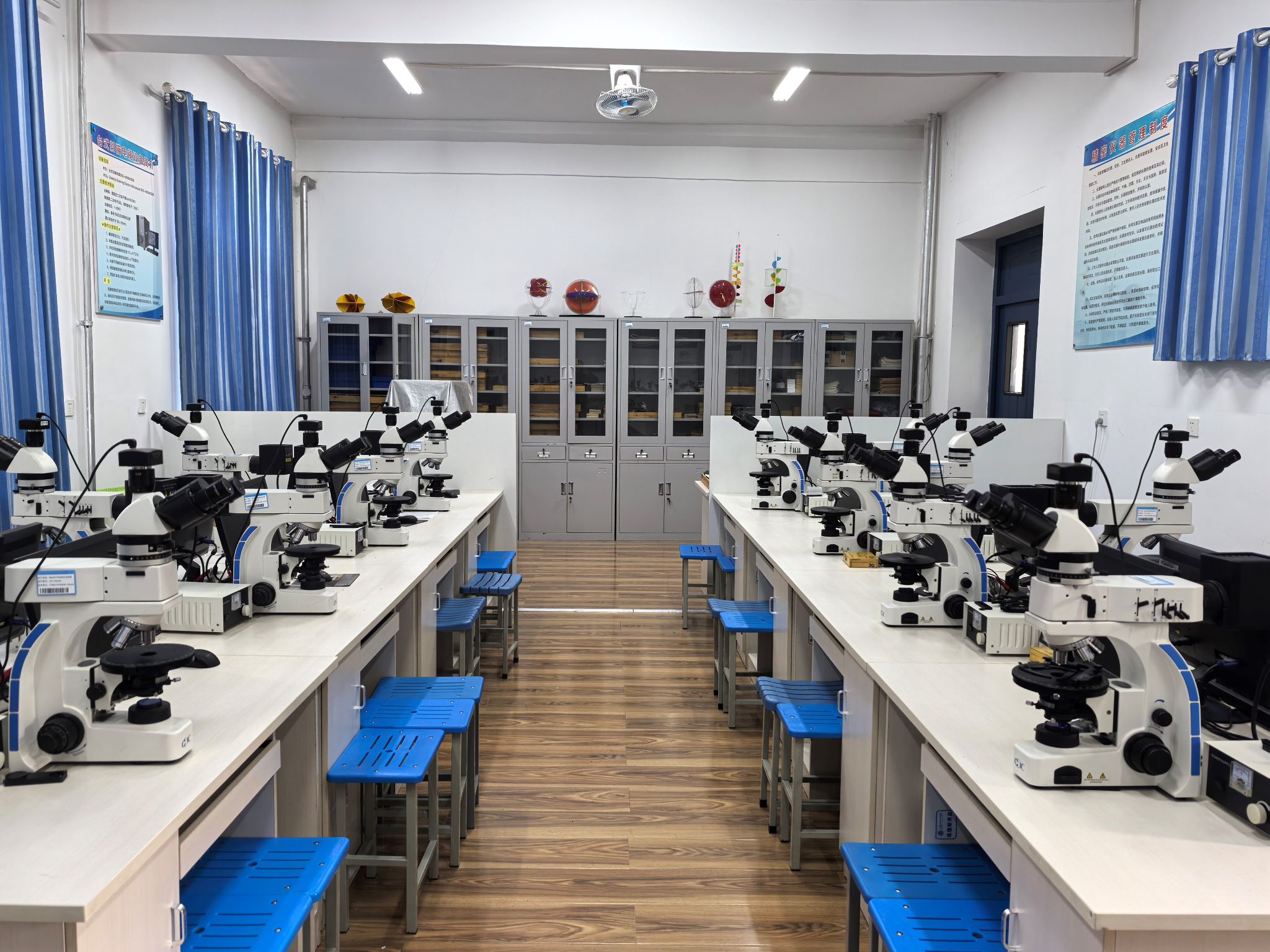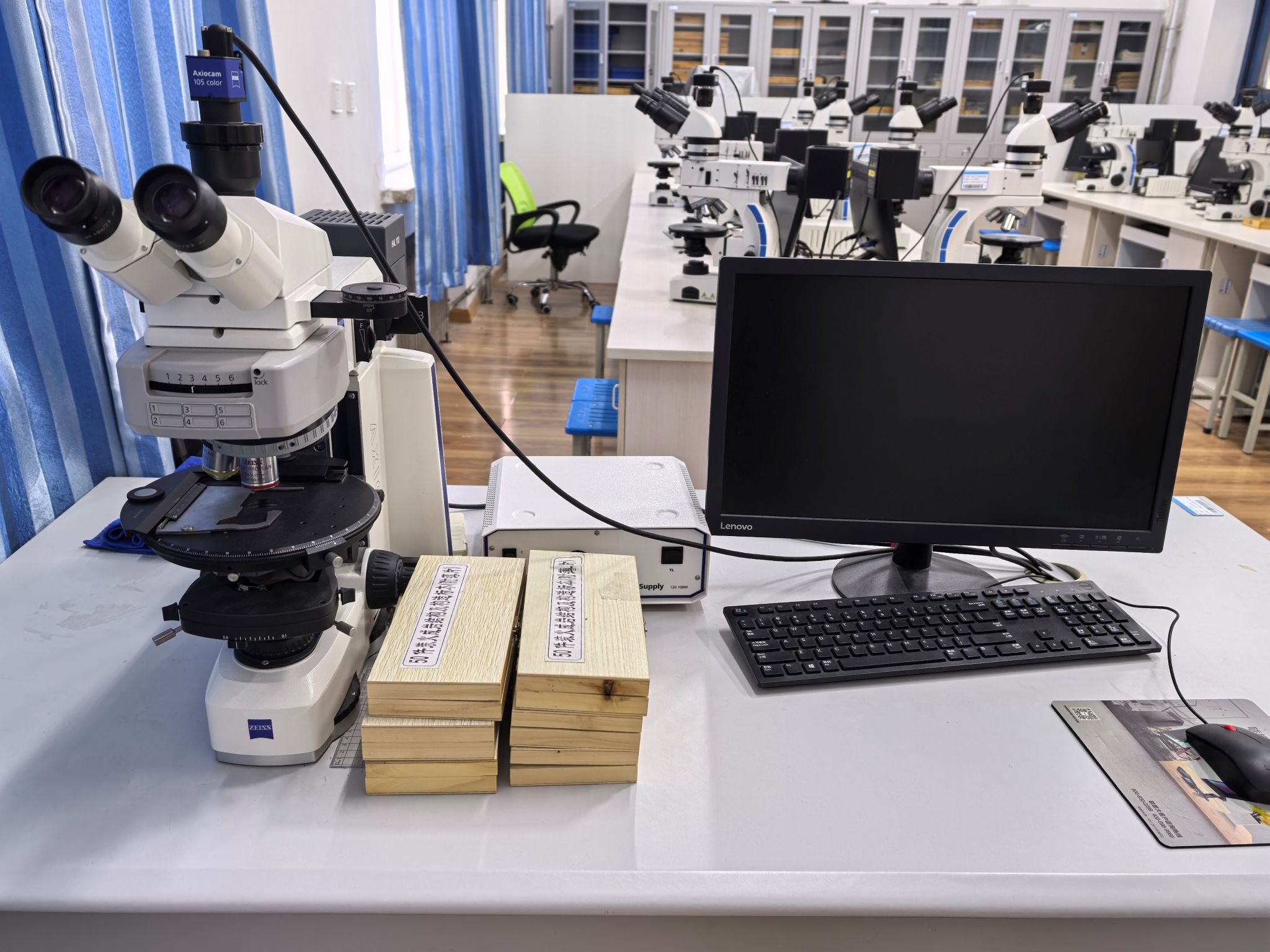 实验室配有电脑16台,偏光显微镜16台,全套晶体模型、透明矿物手标本(附薄片)60种,矿相薄片(附光片)40种、岩浆岩手标本(附薄片)50种、变质岩手标本(附薄片)50种,可以完成结晶学与矿物学、晶体光学、岩浆岩岩石学、变质岩岩石学的实验教学任务。